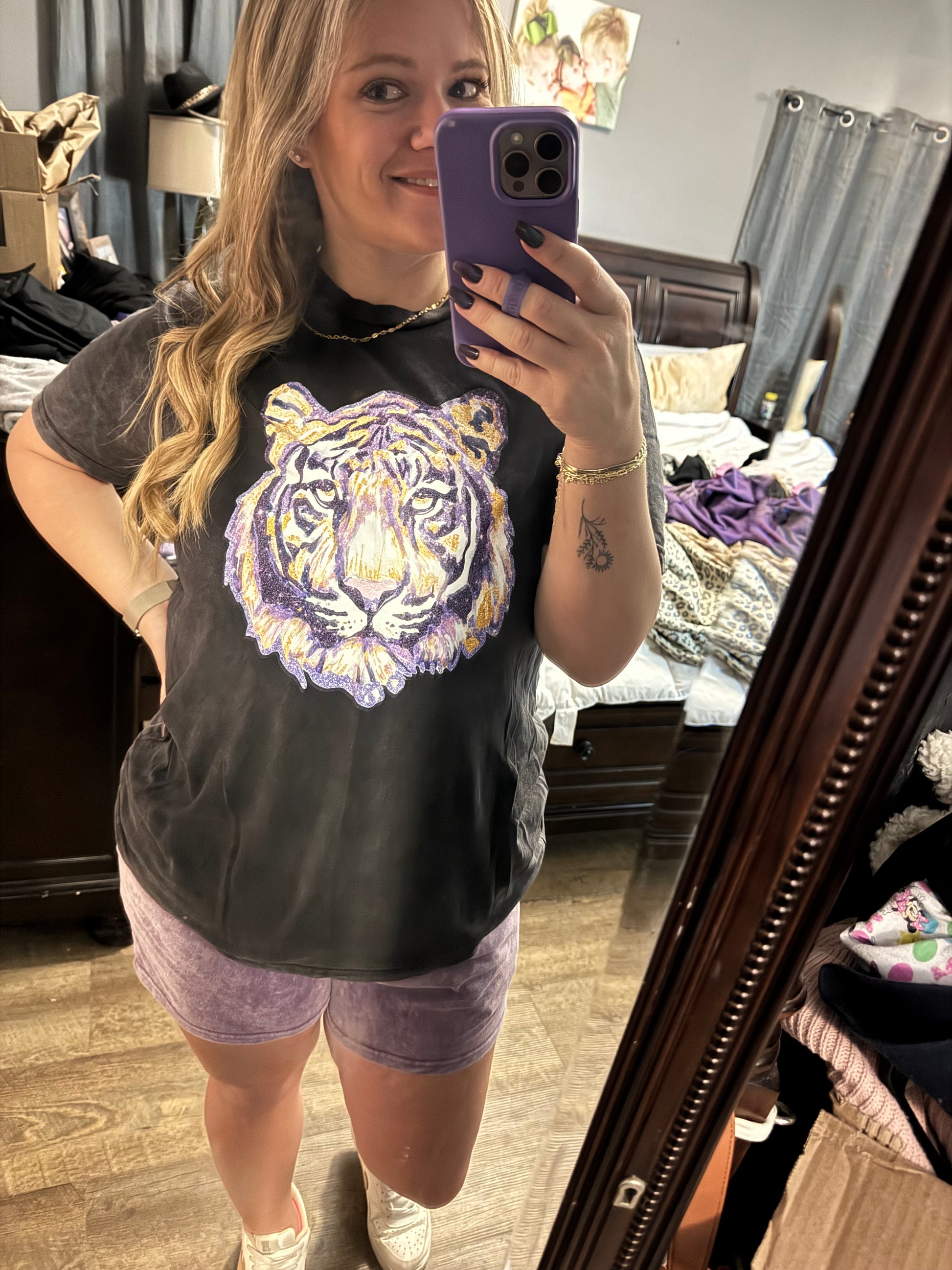 Purple & Gold Glitter Tiger Tee – Lane Seven